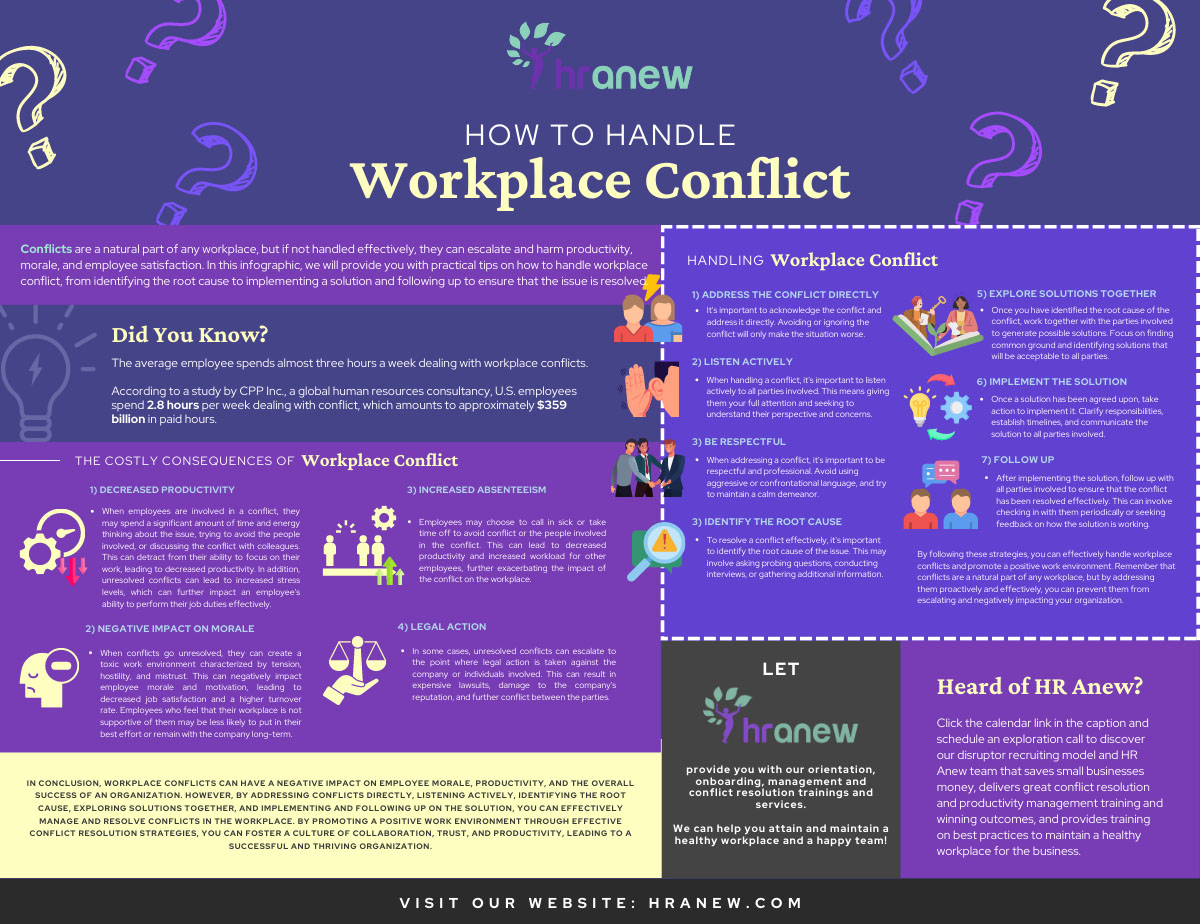 Workplace challenges, whether they involve disagreements, misunderstandings, or differences in perspectives – are inevitable. In fact, studies show that conflict in the workplace is quite common. According to a survey conducted by the American Manage...